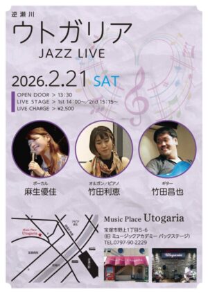 席数30席と小規模ながら温かい雰囲気が特長のMusic Place Utogariaでは、アーティストと観客が心を通わせる音楽体験を提供しています。