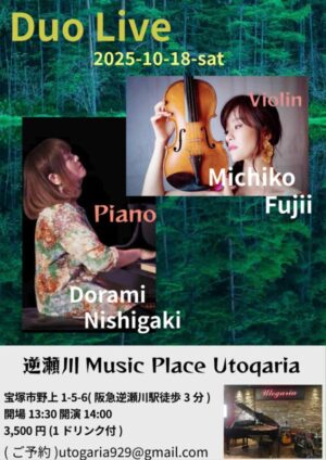 西垣ドラミ♪&藤井道子DUO LIVE Personnel 西垣ドラミ♪(ピアノ)藤井道子(バイオリン) Stage Time Open 13:30 / Start 14:00 Fee 3,500円 ... 2025年10月18日(土) 1:30 PM