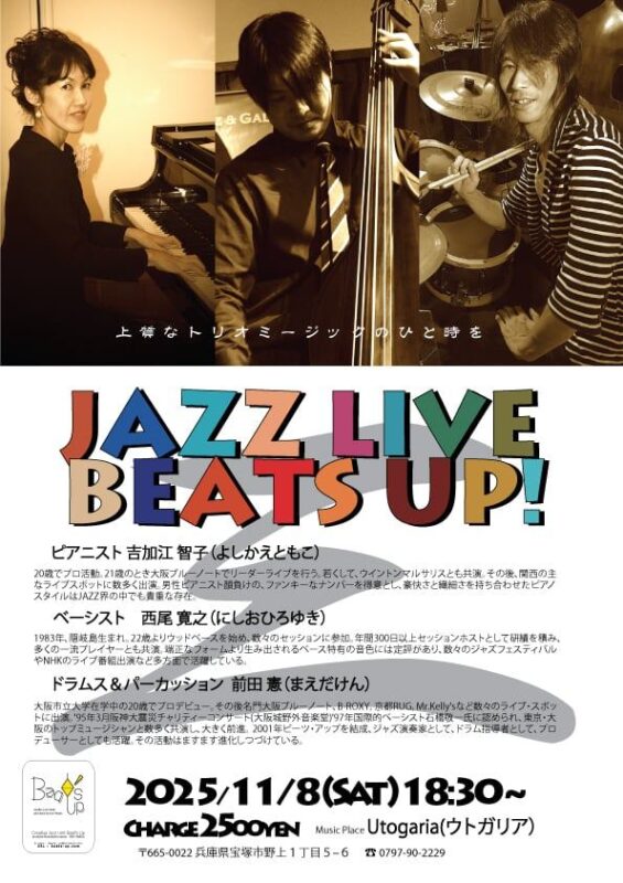 Home Music Place Utogaria -Live Schedule- - Music Place Utogaria(ウトガリア)|宝塚・逆瀬川|ライブハウス Jazz JAZZ LIVE BEATS UP!